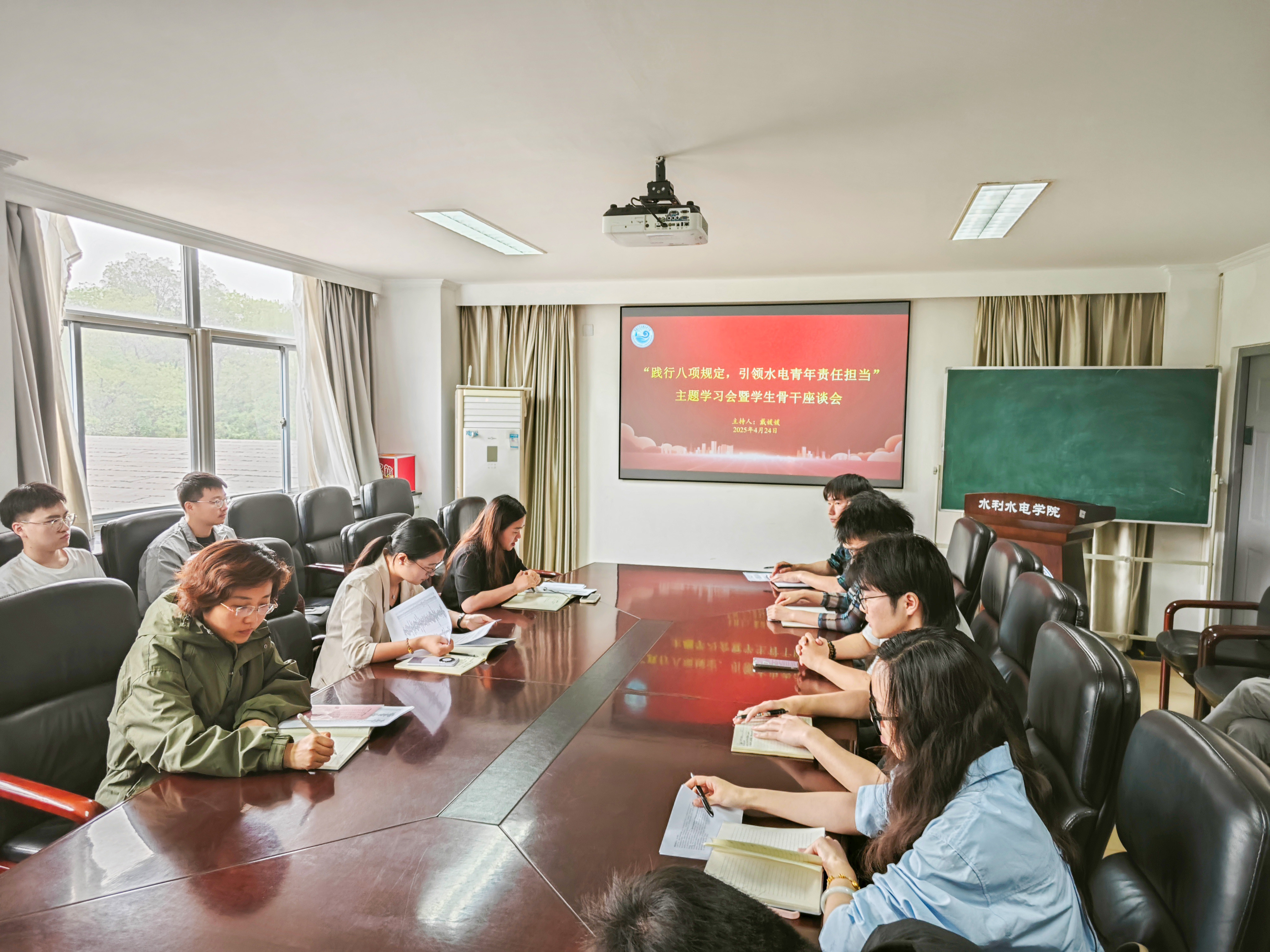 为进一步加强作风建设、推动党风廉政教育入脑入心,增强青年学生骨干的责任意识与服务意识,4月24日,水利水电学院于水电馆329会议室召开“践行八项规定,引领水电青年责任担当”主题学习会暨学生骨干座谈会。学院党委副书记戴媛媛、团委书记笪步源、研究生辅导员赵志涵及学院研究生会主要学生骨干参与此次会议。