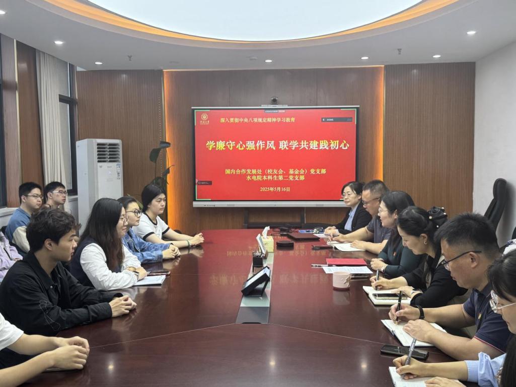 为深入贯彻中央八项规定精神学习教育, 5月16日,我院本科生第二党支部与国内合作发展处(校友会、基金会)党支部联学联建,共同开展“学廉守心强作风,联学共建践初心”主题党日活动。党日活动以“理论学”与“实地走”相结合形式开展,分为支部书记讲党课和赴南京溪田勤廉教育基地参观学习两个部分。开云电竞网国内合作发展处(校友会、基金会)党支部书记赵冰、开云电竞网水利水电学院本科生第二党支部书记帅雨婷、两支部党员代表参与。