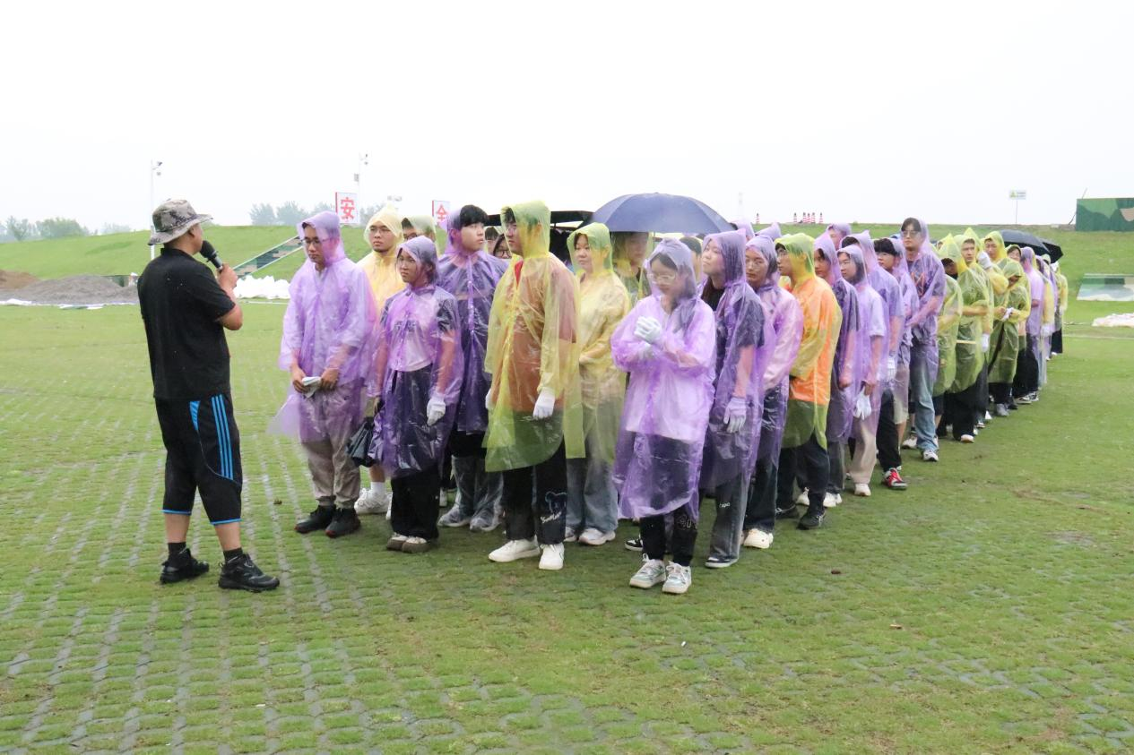 活动伊始,各班负责劳动教育的带队教师便开展安全教育,详细讲解活动中的注意事项。随后同学们以饱满的热情奔向训练场,教官以详实的案例为引,深入浅出地讲解防汛抢险水情知识,指出堤身裂缝、渗漏等细微迹象可能引发的重大险情,强调“千里之堤毁于蚁穴”的道理,每一个知识点都与实际防汛工作紧密相连。尽管冒着小雨开展实训教育,同学们仍热情不减,屏息凝神,认真聆听老师的讲解。