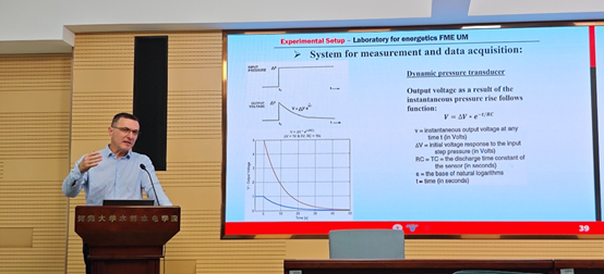 Uroš Karadžić教授深耕流体瞬变与水锤效应领域多年,作为黑山大学机械工程学院教授、博士生导师,同时承担欧盟FP7能源项目国家联络人职责,还曾获黑山工程师协会年度规划建设奖。在水锤研究的长期实践中,他带领团队搭建起国际领先的水锤实验平台,其主导搭建的国际领先水锤实验平台,犹如精密的‘水锤模拟舞台’,实现了流体瞬变过程的动态可视化解析。配套开发的数值仿真系统,更是为水电站与泵站的安全设计打造“数字护盾”,精准预判瞬态过程风险。此次报告里,他围绕“黑山大学水锤实验和数值研究”,不仅分享实验与模拟成果,还谈及团队在攻克液柱分离、动态摩阻等难题时,跨学科协作的故事。团队成员来自机械设计、流体力学、材料科学等多个专业领域,各团队成员多次召开跨学科研讨会议,经过无数次的方案修改和实验验证,最终取得突破性进展,为师生了呈现科研攻关的完整图景,相关研究在国际水力学界持续引发关注。