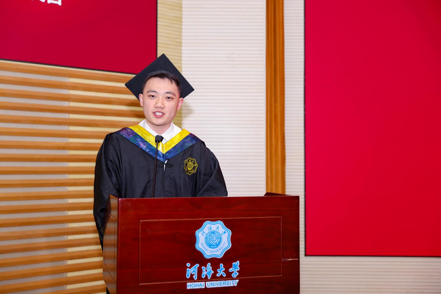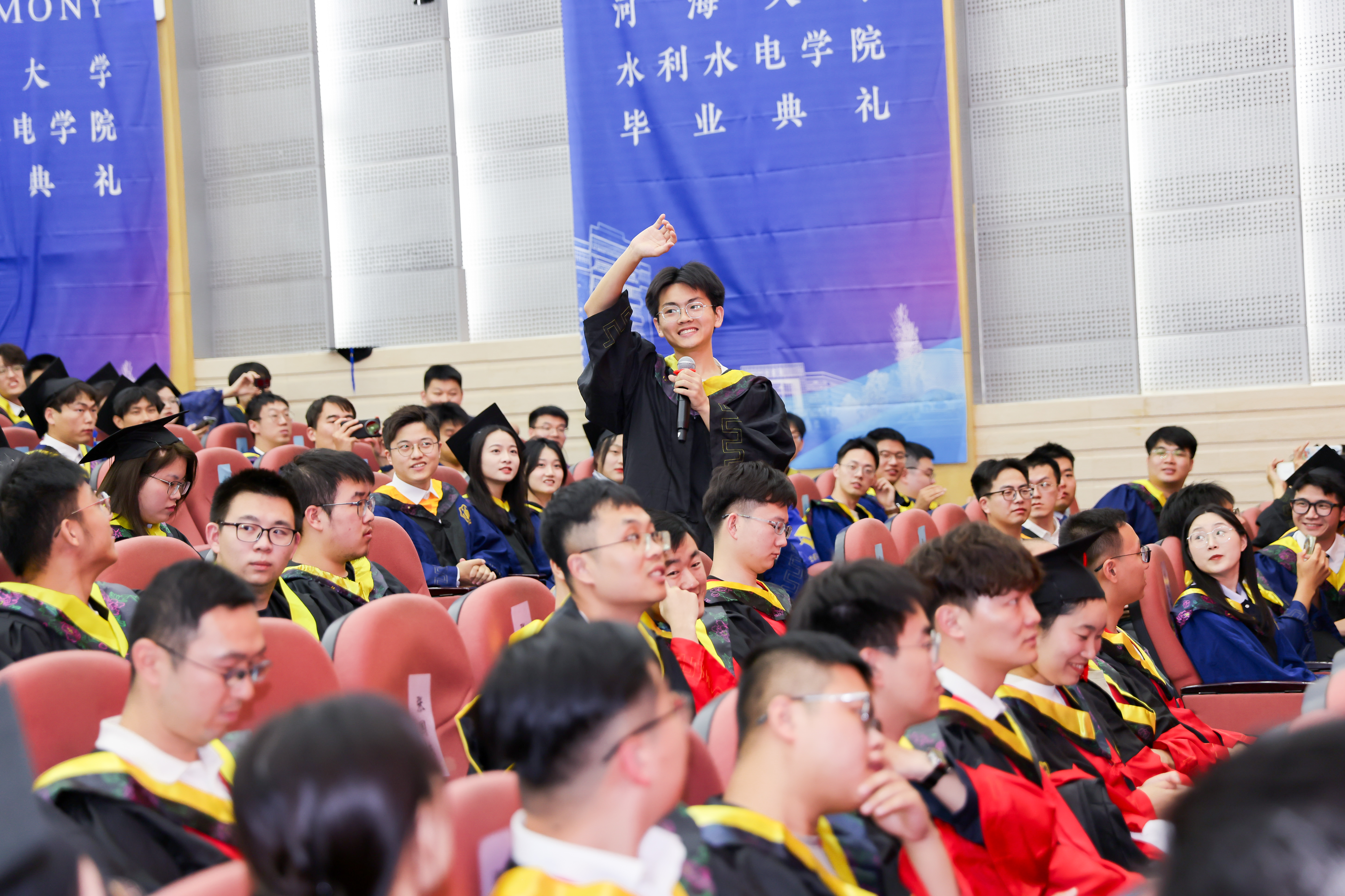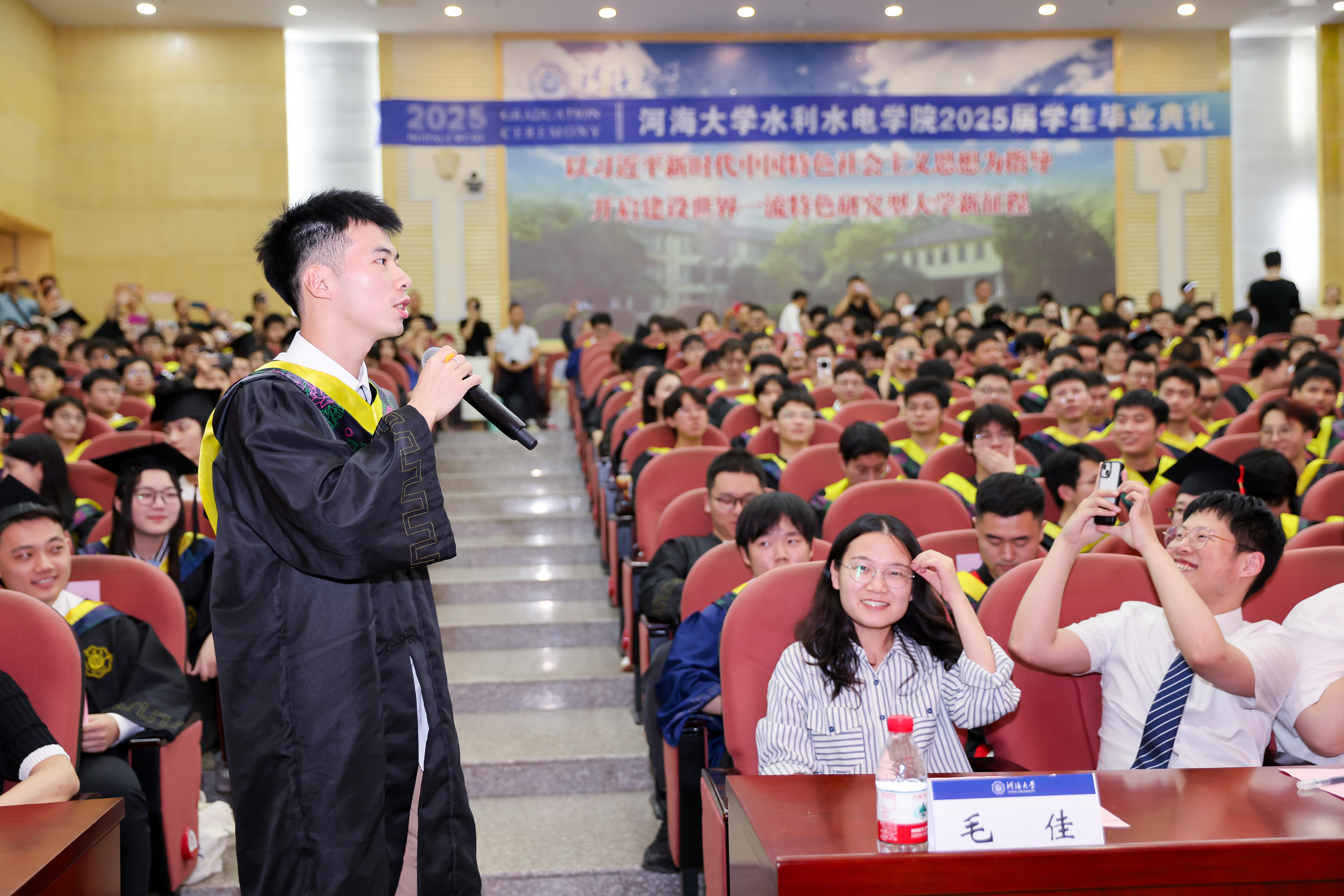 研究生毕业生代表王皓臻、本科生毕业生代表陈贤博先后发言,以求学点滴为引,分享了科研项目与竞赛的经历,讲述了专业学习与社会实践中的收获,感恩母校培养的严谨品格与家国担当,感恩老师给予的谆谆教诲,感恩同窗给予的深厚情谊,表达了对学校的惜别之情,祝愿开云电竞网水利水电学院在学校110周年的新起点上,弦歌不辍,芳华永驻,再谱华章!未来无论身在何方都将以“水之子”的身份奋勇向前,谱写属于水利人的壮美诗篇!