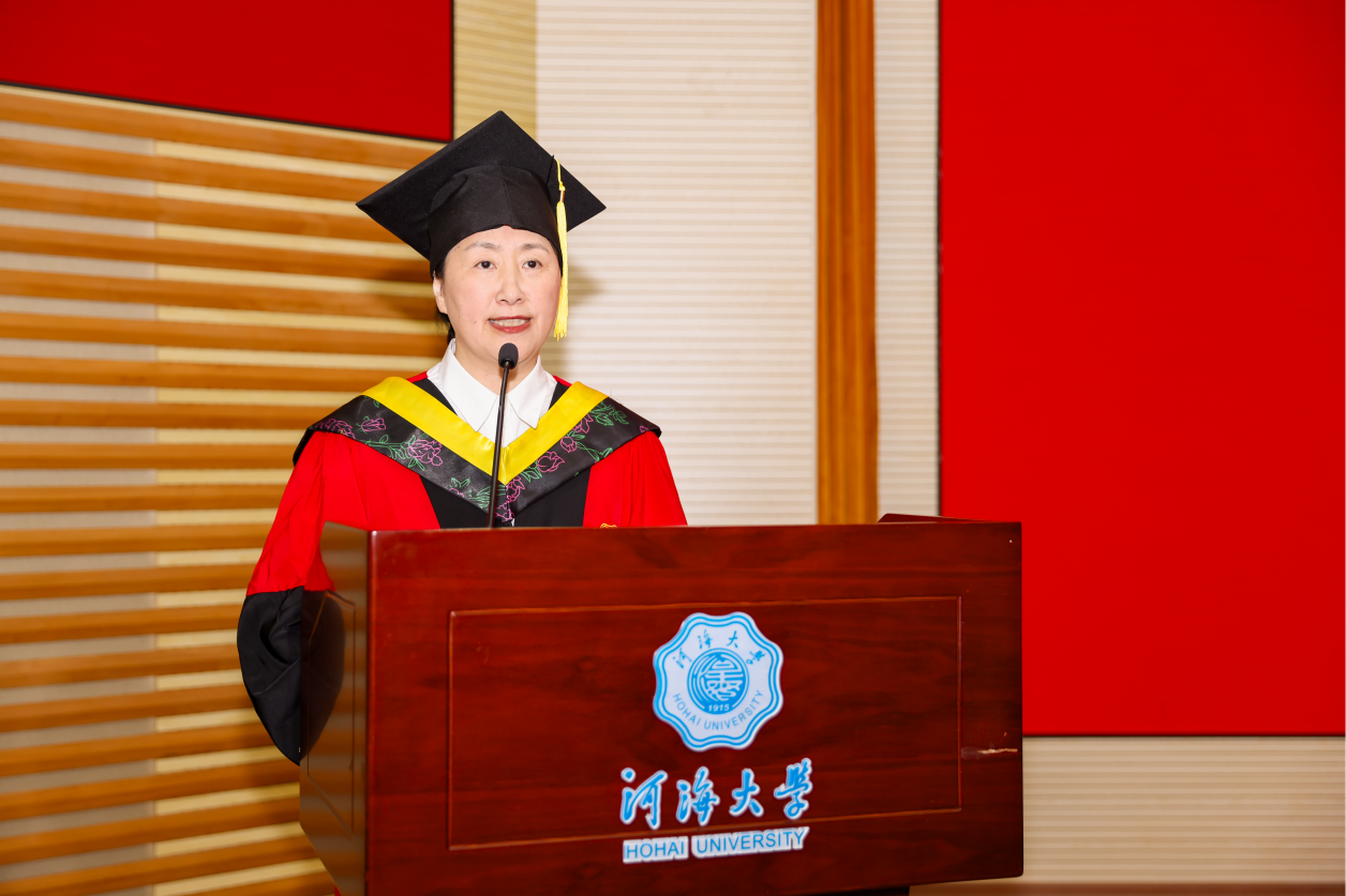 王媛院长发表致辞,她代表全院师生向顺利完成学业的全体毕业生们表示最热烈的祝贺,向辛勤付出的教职工老师以及学生家长们致以衷心的感谢。王媛院长对全体毕业生提出三点期望:一是胸怀家国天下,永葆治水兴邦的赤子之心。深度融入教育、科技、人才一体化发展战略布局,在专业领域深耕细作,以知识创新驱动产业变革,实现个人成长与国家发展的同频共振。二是锻造人格素养,绘就安澜惠民的壮美画卷。持续积累实现战略高度、专业深度、视野广度、人文厚度的多维突破,在提升认知站位中明确人生航向,在锤炼过硬本领中创造社会价值,在厚植家国情怀中实现生命升华。三是坚持终身学习,书写智慧水利的时代华章。既要注重在实践中检验真理,更要善于从生活细节中提炼智慧,将每一个场景都转化为学习场域。积极参与重大工程建设担当作为,投身科技前沿展现智慧才华,为构建现代水网体系、推动水利高质量发展贡献青春力量,让中国治水智慧闪耀世界舞台。