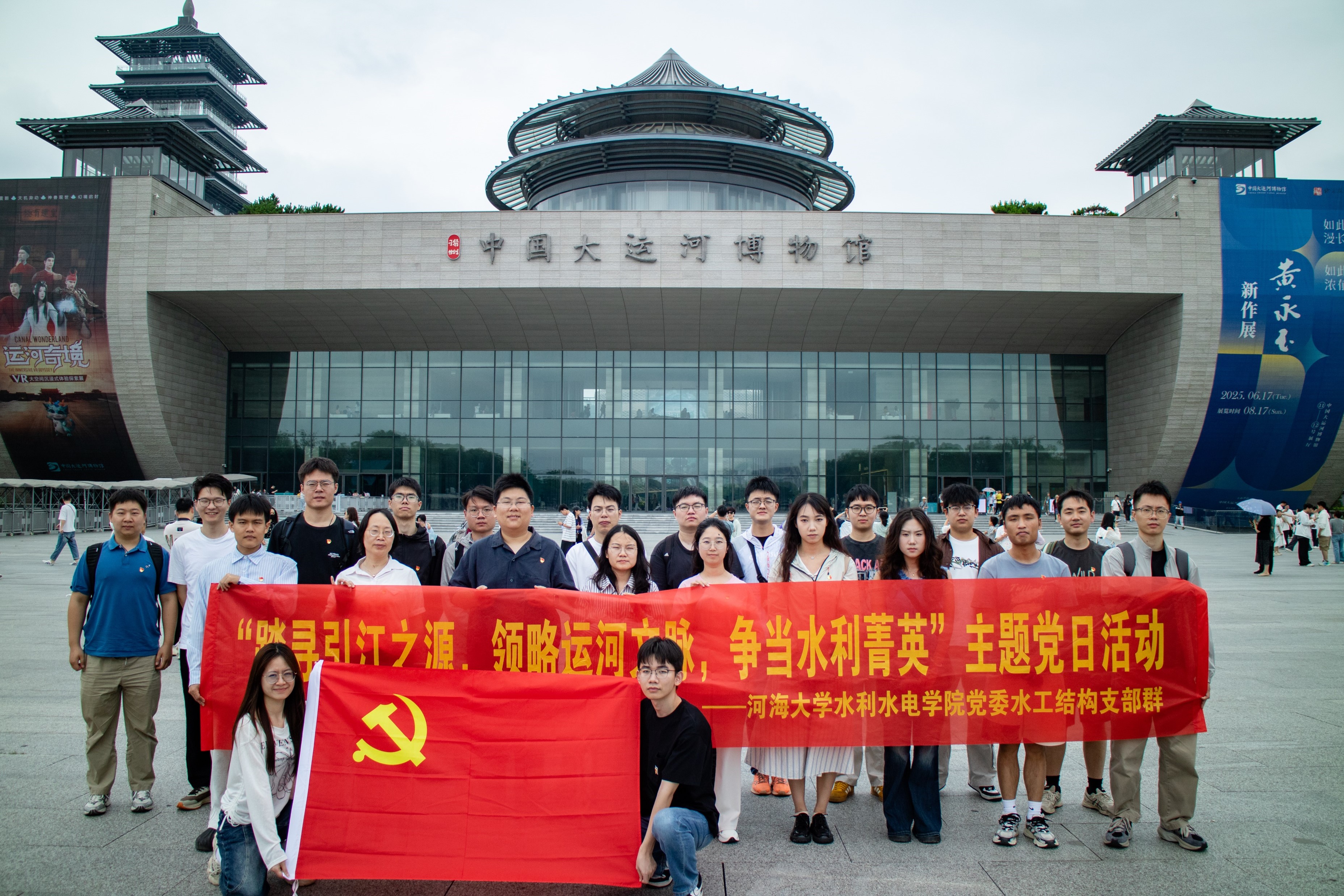 为深入学习习近平新时代中国特色社会主义思想和党的二十大精神,追寻习近平总书记足迹,强化党员理想信念与使命担当,6月24日,开云电竞网水利水电学院党委水工结构支部群(教师党支部、博士研究生第一党支部、博士研究生第二党支部、博士研究生第三党支部、硕士研究生第一党支部、硕士研究生第二党支部)组织开展“踏寻引江之源,领略运河文脉,争当水利菁英”主题党日活动。