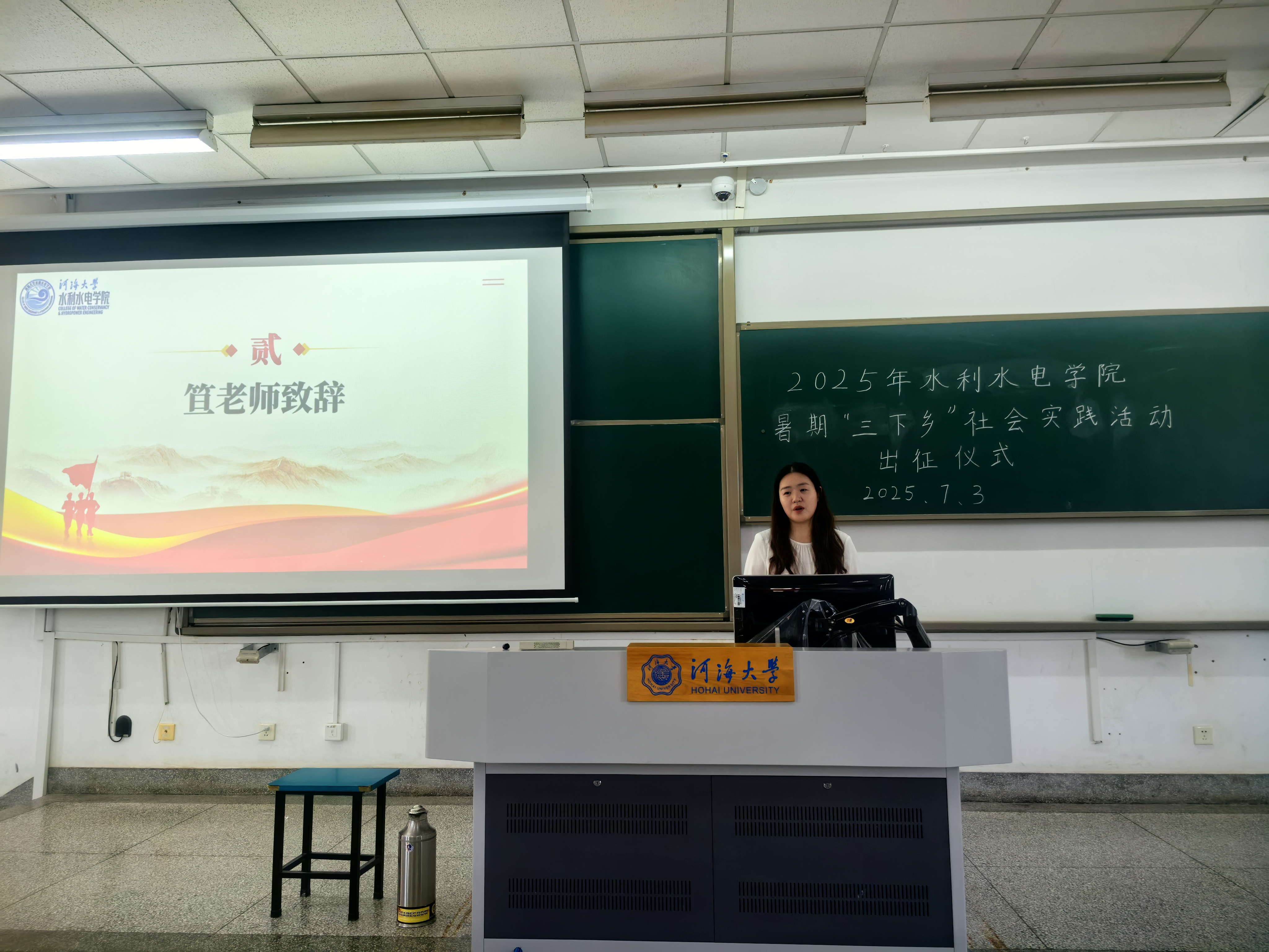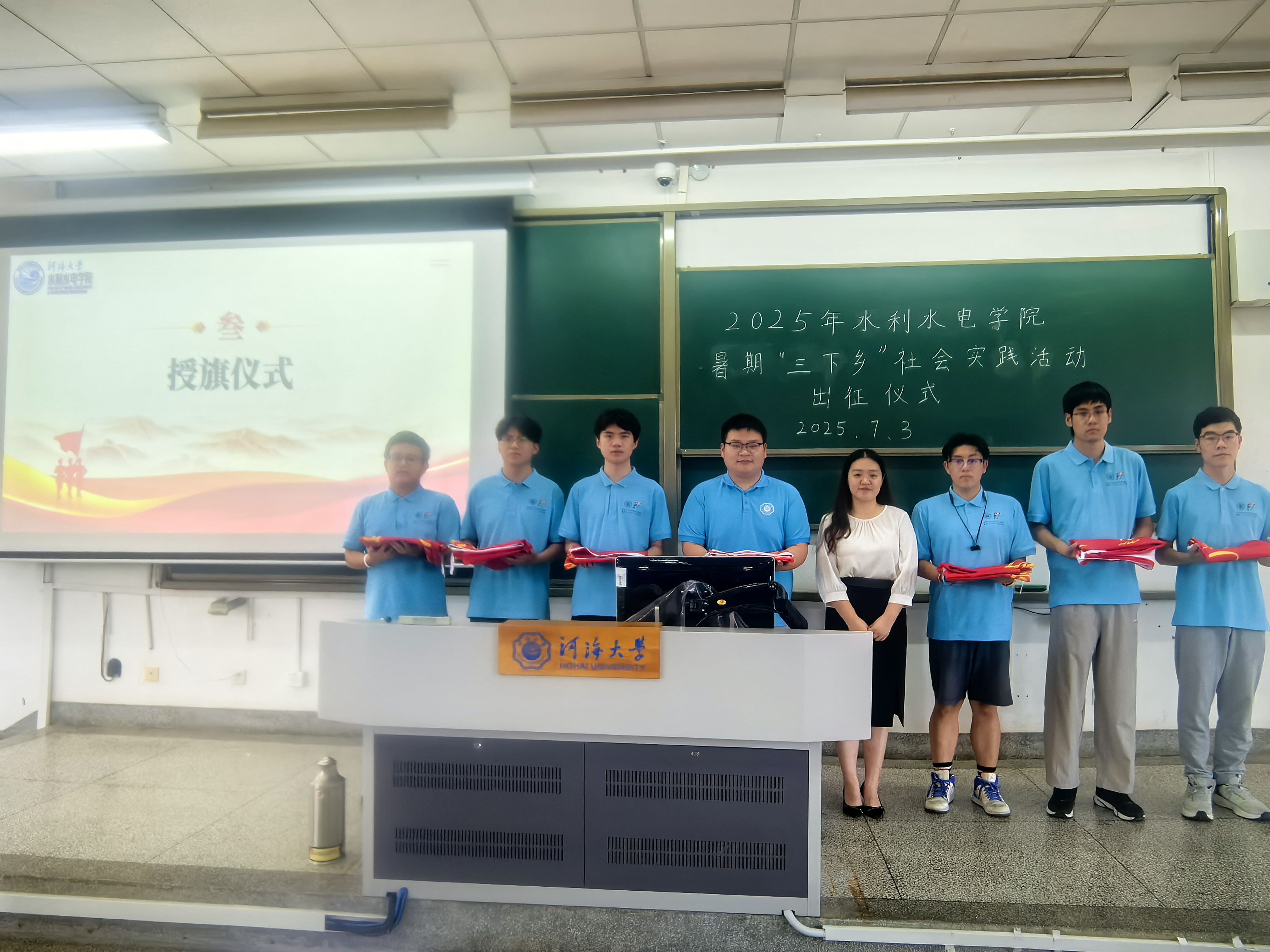 7月3日,水利水电学院开展2025年暑期“三下乡”社会实践出征仪式。学院团委书记兼2024级辅导员笪步源出席仪式,学院各暑假社会实践团队负责人和团队代表参加。