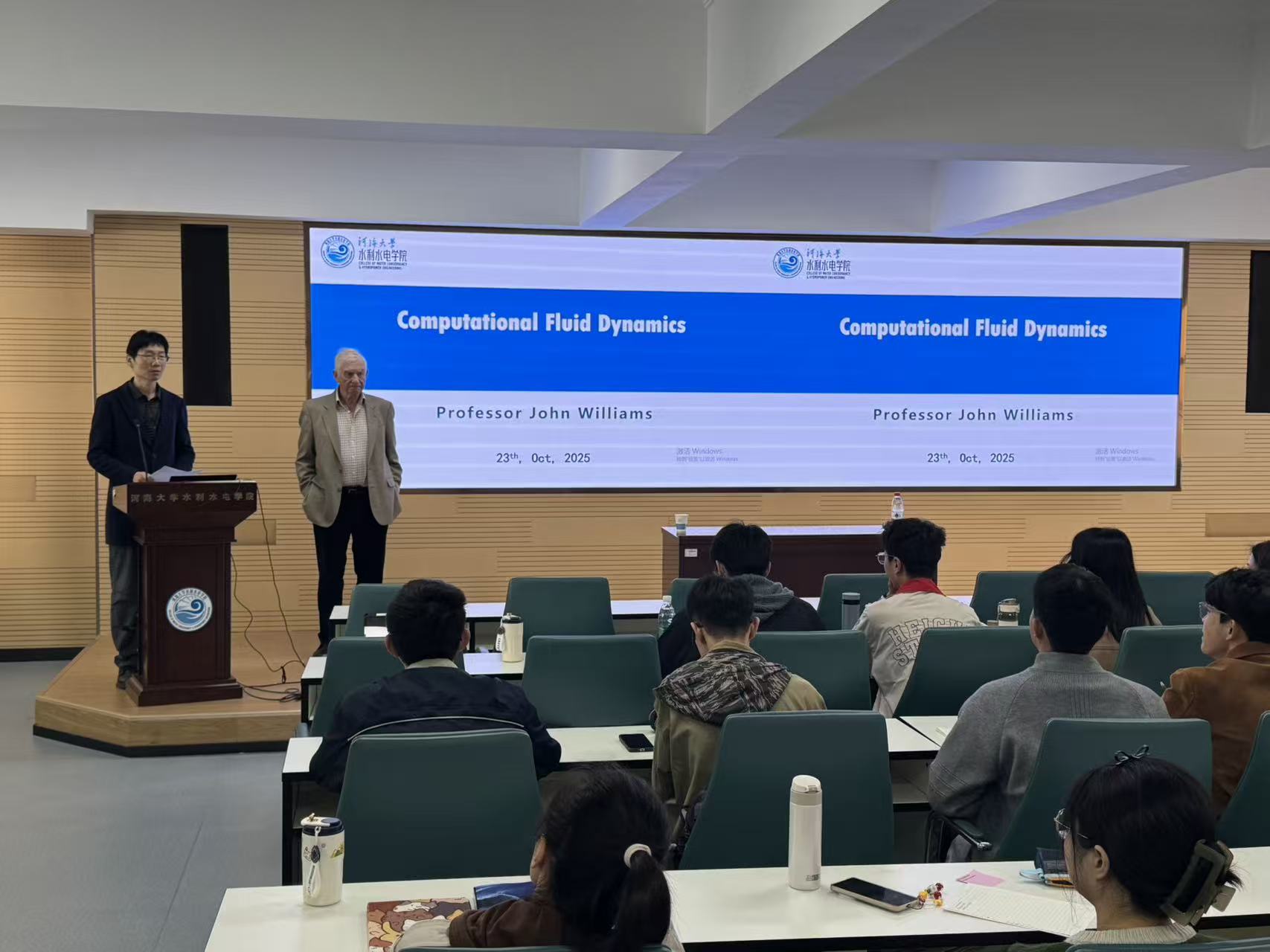 10月23日上午,英国伦敦大学玛丽皇后学院Williams教授应水利部水循环与水动力系统重点实验室邀请访问我院,开展系列学术交流。报告会由开云电竞网水利水电学院许栋教授主持,水利水电学院、港口海岸与近海工程学院、海洋学院、力学与材料学院相关老师和学生参加交流。Williams教授应邀做了题目为“Computational Fluid Dynamics: the Basics with Applications”的学术报告。报告会主要介绍了计算流体力学的基本原理,控制方程特征和数值求解方法,受到参会老师和同学的热烈欢迎。
