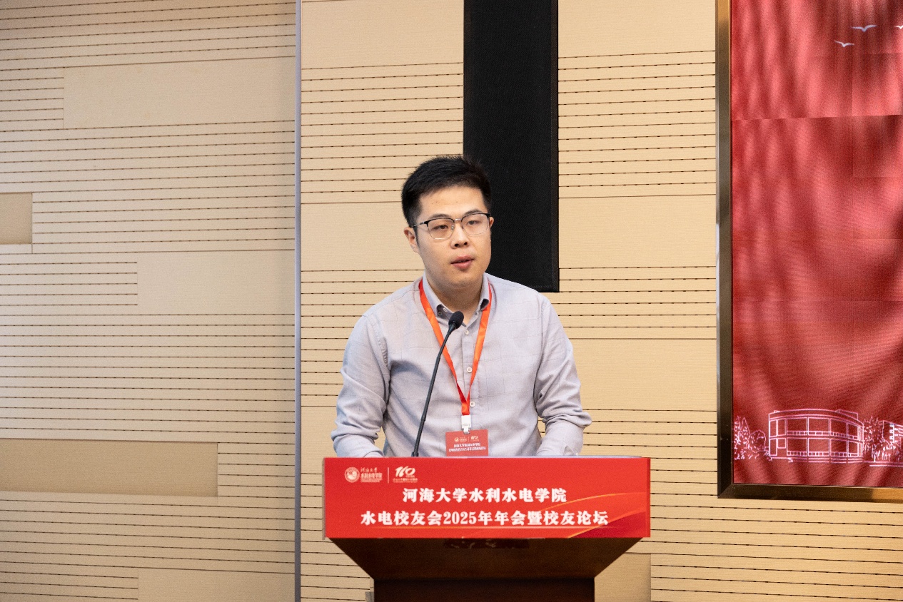 水电校友会副会长、水动79级校友沈一鸣、水工81级校友金惠英、水工94级校友黄剑,水电校友代表、水工08级校友刘亚琴,水电校友会副秘书长、水工10级校友张召依次发言,他们深情回忆在校求学岁月,表达对母校培育的感恩之情,表示将继续关注支持学院发展,更好服务广大校友,积极投身水利事业建设。