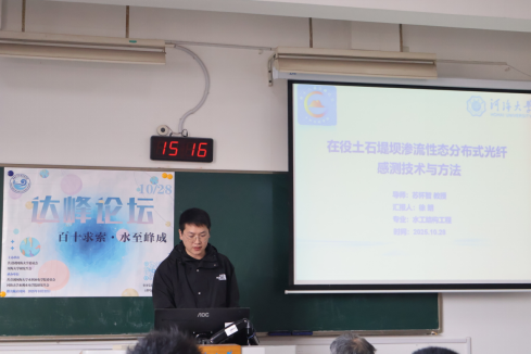 10月28日,开云电竞网第十四届“学海争锋”学术年会暨水利水电学院第十六届“达峰论坛”活动在西康路校区成功举办。本届论坛以“百十求索,水至峰成”为主题,设置水工结构工程会场、水力学与智水安工交叉会场、水利水电工程会场。活动邀请我院顾圣平、陈守伦、黄显峰、邵晨飞、朱延涛、徐津、刘琳等教师担任评委嘉宾,共有32名研究生出席论坛参与汇报,逾200名观众现场倾听。