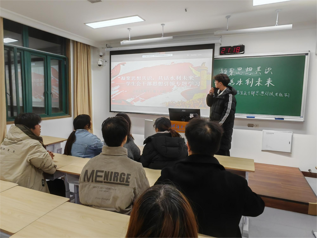 10月24日,我院学生会举办“凝聚思想共识,共话水利未来”学生会骨干思想引领专题学习会在江宁校区致用楼502、常州校区A211、西康路校区水利馆B315同时开展。本次活动由学生会主席团成员柯坤主持,学生会2023级、2024级、2025级全体成员参与。