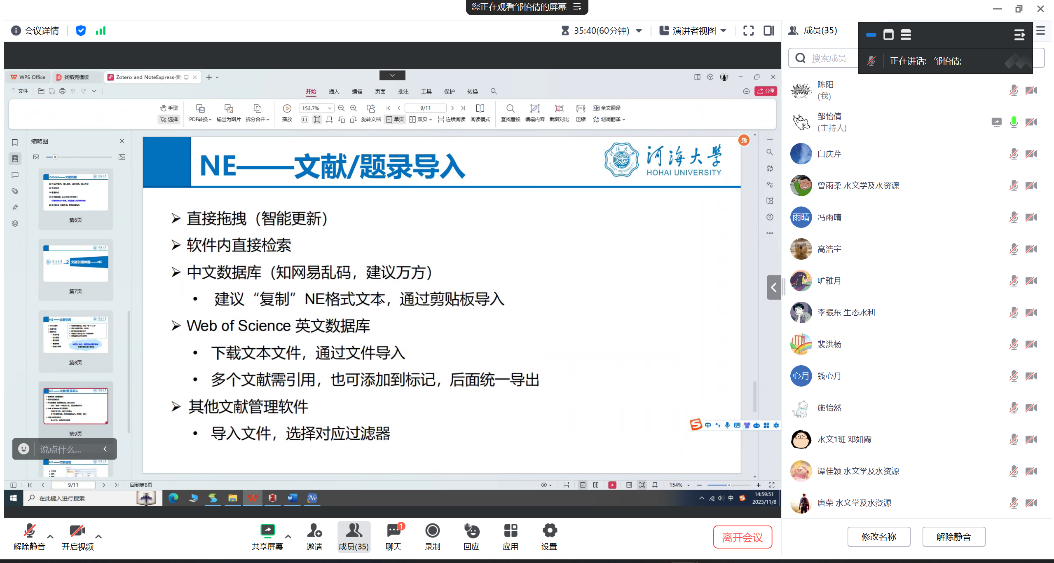11月8日,第八期“水博研学”学术WE沙龙在工程馆109顺利举行。本期沙龙的主题是“高效选择文献、阅读文献、管理文献”,特邀图书馆信息咨询部的詹文青老师为指导老师,分享嘉宾是2022级水文学及水资源硕士黄晴晴和2022级水文学及水资源硕士陈阳。