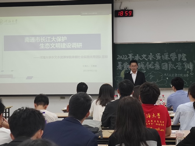 9月13日,水文水资源学院2022年暑期社会实践评优答辩在江宁校区举行。答辩邀请了校学生处陈智老师,校团委徐欣宁老师、水文水资源学院鲁程鹏教授、秦友伟副教授、邓超副教授、学院实验室傅巧妮老师、研究生辅导员董叶斓老师、本科辅导员韦语涵和蔡庆泽老师担任评委。答辩采用线上线下相结合的方式进行,来自学院多个年级本、硕、博共计40余支团队和个人在线下参加了校级优秀团队、优秀个人和优秀调研报告三项答辩。院团委书记莫晓曼老师和100余名同学旁听了答辩会。