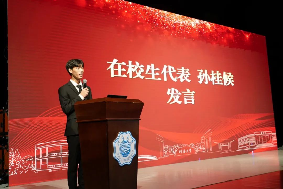 孙桂候在日常学习生活中充分发挥学生党员的模范带头作用,并积极参加党内活动和各类红色研学活动。他作为领学人为党员同学们和低年级团员同学主讲党课,带领同学们共同学习中国共产党人的精神谱系;作为党员代表参加接力诵读《中国共产党简史》,号召同学们一起在党史学习中坚定理想信念,不断奋勇向前;作为党员先锋岗的一员,他认真做到“亮身份、树形象、作表率”,结对帮扶困难同学,并面向低年级开展经验分享会。今年9月,他还在学院2023级本科生开学典礼上作为在校生代表发言。此外,孙桂候作为开云电竞网“闻天”管乐团单簧管声部的一员,在建党百年文艺晚会等多个舞台上奏响了《红旗颂》等红色乐曲,用音乐传承红色经典。