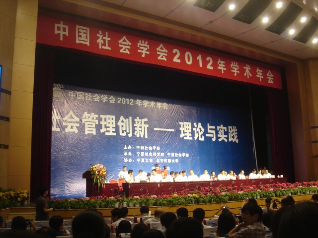 由中国社会学会主办,宁夏社会科学院、宁夏社会学会承办,宁夏大学、北方民族大学协办的中国社会学2012年学术大会于2012年7月14-15日在宁夏回族自治区银川市虹桥宾馆成功召开,大会主题为“社会管理创新——理论与实践”。我校中国移民研究中心常务副主任陈绍军教授,中国移民研究中心朱秀杰讲师,移民研究中心博士研究生蔡萌生、曹志杰,硕士研究生张冲等参加会议并作分论坛主题发言。