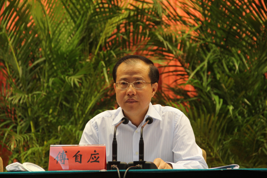 傅自应在讲话中指出,江苏是一个经济大省,也是一个教育和文化大省,还是一个哲学社会科学大省。近年来全省广大哲学社会科学工作者紧紧围绕经济社会发展的大局,积极开展理论研究和实践探索,全省高校哲学社会科学呈现出积极向上、蓬勃发展的良好态势,建立了一批前沿科学,打造了一批科研创新和决策咨询的平台,产出了一批有影响的精品力作,涌现出一批社科名家。傅自应在讲话中还结合我省实际和现时代赋予我们的责任,对全省广大哲学社会科学工作者提出五点要求:一是发展哲学社会科学必须具有全球视野和面向世界;二发展哲学社会科学必须突出中国特色、江苏特点;三是坚持发展哲学社会科学必须坚持解放思想、实事求是;四是坚持发展哲学社会科学必须注重服务发展、指导实践;五是发展哲学社会科学必须强调尊重知识尊重人才。