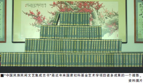在上述项目中,被誉为中华民族的“文化长城”的十部“中国民族民间文艺集成志书”,共计298卷,约5亿字。涵盖民间歌曲、戏曲音乐、民族民间乐器乐曲、曲艺音乐、民族民间舞蹈、民间故事、民间谚语等内容,其工作规模之大、动员人数之多、范围之广、普查程度之深,在中国历史乃至世界历史上都是前所未有的。文化部民族民间文艺发展研究中心主任李松指出,十部文艺集成的对象都是生活文化,如果生活文化迅速背离传统,一个民族的精神家园、一个国家的文化认同将面临风险。