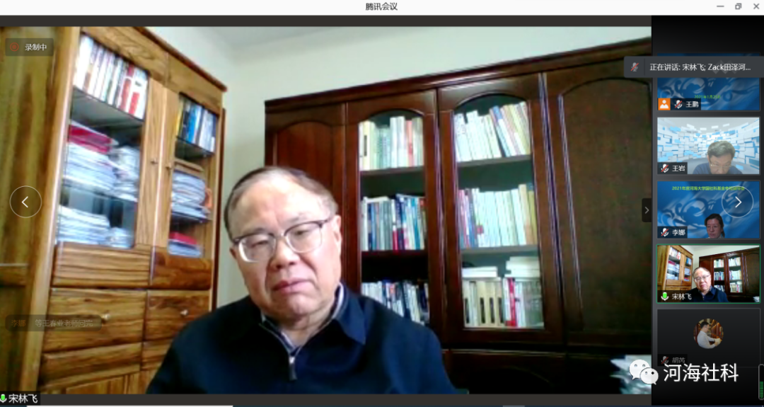宋林飞教授的专题辅导题为“国家社科基金项目选题与论证策略”,他围绕国家社科基金如何选题、选题如何进行论证等问题做了精彩讲解。王岩教授的专题辅导主题为“从申报指导的角度谈青年学者如何潜心科学研究”,他围绕“养成五种科研品性——前言(热点)的把握、习惯的养成、课题的培育、团队的意识、诚信的坚守”五个方面进行了阐述,引导我校青年教师潜心、深入进行科学研究。专题辅导会后,专家们进行线上答疑,参会老师们围绕申请书课题论证专家观点、研究方法、前期成果等方面提出了问题。