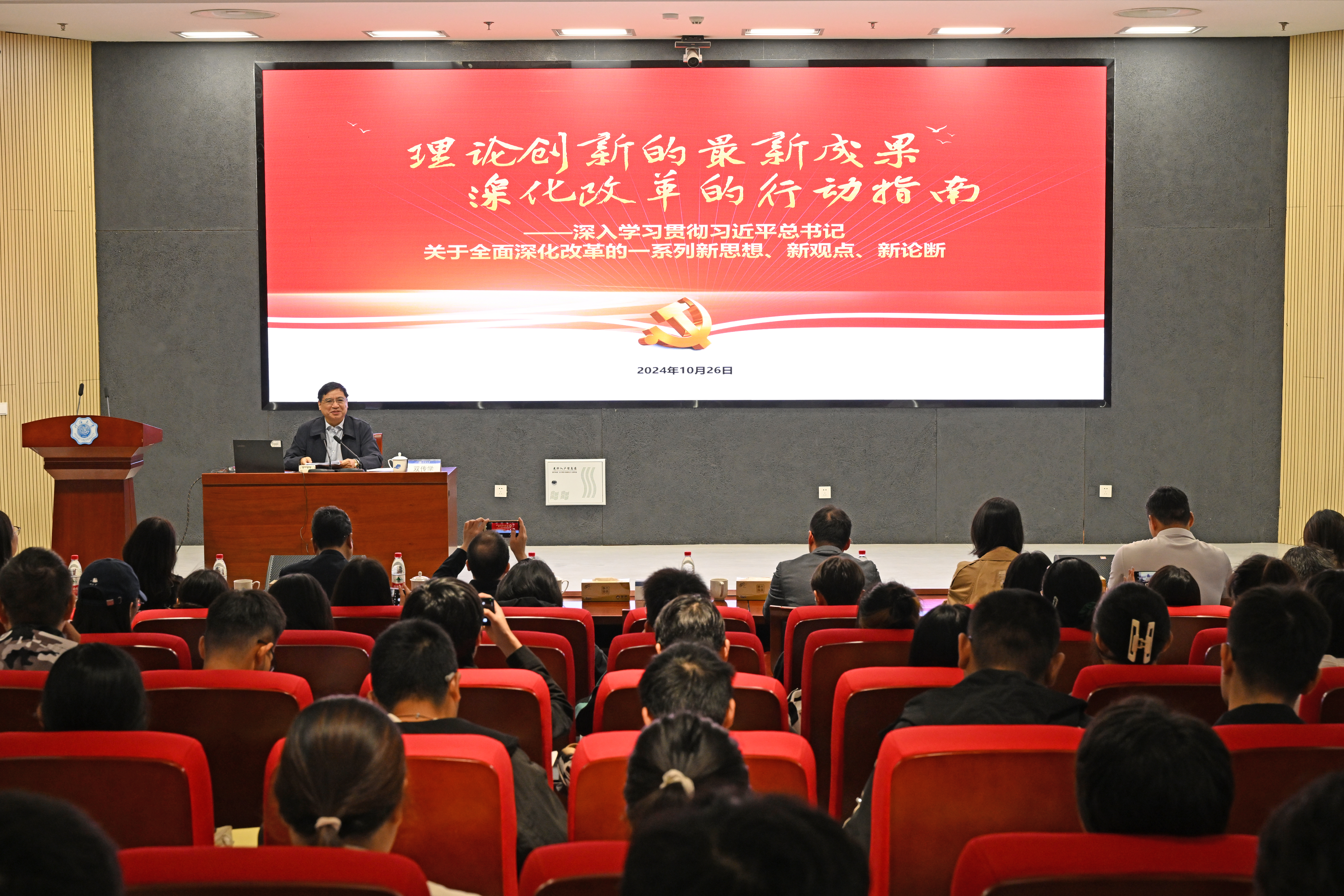 双传学在报告中对深刻领会习近平总书记关于全面深化改革的一系列新思想、新观点、新论断的重大意义、丰富内涵和实践要求等方面进行了系统阐释和深入解读。他指出,习近平总书记关于全面深化改革的一系列新思想、新观点、新论断,是新时代全面深化改革理论创新的最新成果,是进一步全面深化改革的行动指南。学好用好这些新思想、新观点、新论断,对于统一和引领全党全国各族人民思想和行动,以更加奋发有为的精神状态进一步全面深化改革,具有重要意义。高举中国特色社会主义伟大旗帜,做习近平新时代中国特色社会主义思想的坚定信仰者和忠实实践者,坚定信心、同心同德,以身作则、以上率下,为全面建设社会主义现代化国家、全面推进中华民族伟大复兴作出应有的贡献!