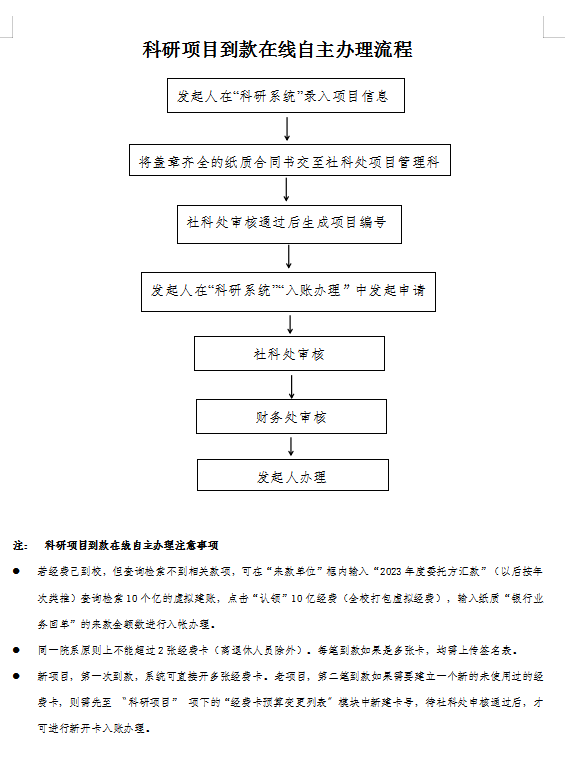 科研项目到款在线自主办理流程