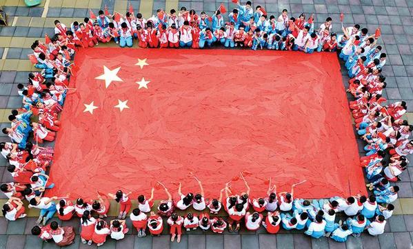 社会主义办学方向是我国教育最鲜亮的底色,我国教育要培养的是社会主义建设者和接班人,这是个根本性的问题。图为山东省沂源县荆山路小学开展“红领巾拼国旗祝福祖国迎国庆”活动,学生们在老师带领下用红领巾拼出了一面巨型国旗,表达对伟大祖国的祝福。 教育部供图