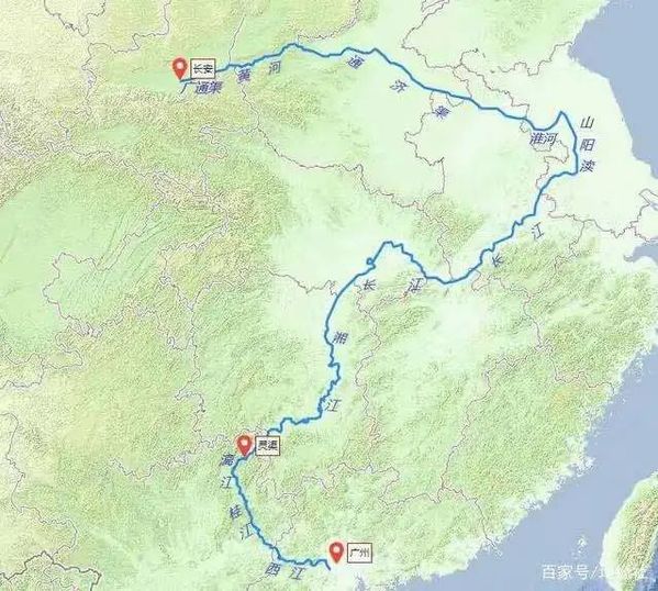 图 唐代岭南经灵渠前往长安的水路示意图