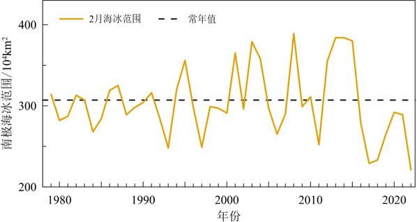 1979~2022年南极2月海冰范围变化