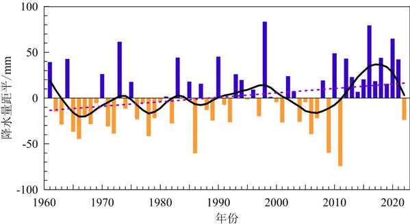 1961~2022年中国平均年降水量距平