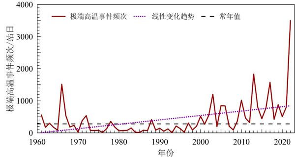 1961~2022年中国极端高温事件频次
