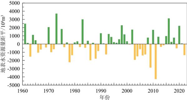 1961~2022年中国地表水资源量距平