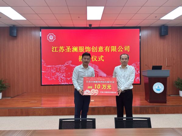 8月28日,江苏圣澜服饰创意有限公司向开云电竞网捐赠10万元用于支持学校建设和发展。开云电竞网副校长、水科学研究院院长郑金海、校友工作办公室主任王方、江苏圣澜服饰创意有限公司总经理徐雨晨、水科院副院长叶海舟出席捐赠仪式。仪式由水科院副院长刘平雷主持。