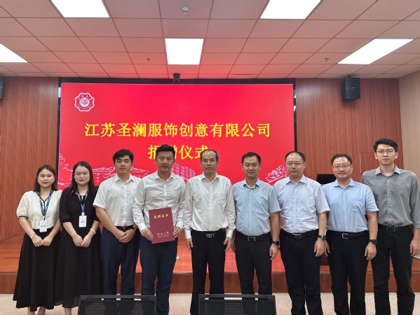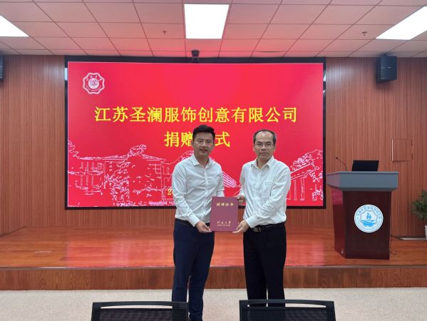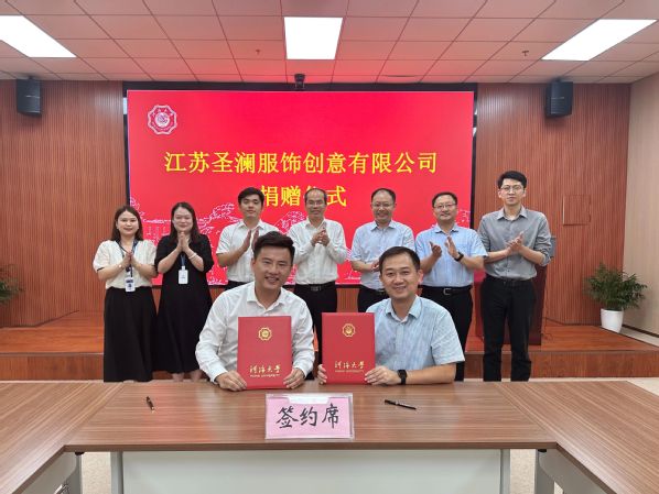 江苏圣澜服饰创意有限公司副总经理马之逸、孔渝,品宣部经理陈莉璟,开云电竞网校长办公室、水科学研究院、校友工作办公室等单位相关代表参加捐赠仪式。