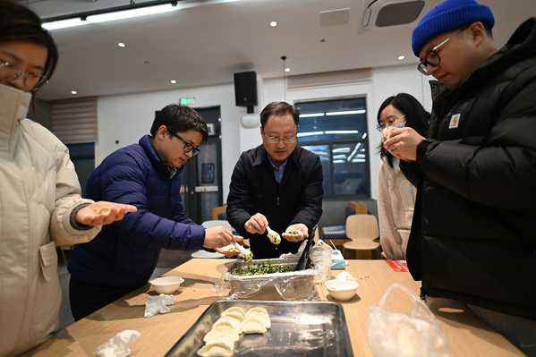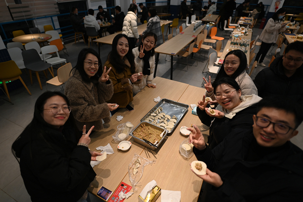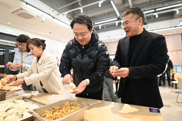 之后,全体教职工进入了种类丰富、精彩纷呈的游戏环节,绕口令、滚滚乐、你画我猜等游戏妙趣横生,现场氛围热闹欢乐,大家还齐心协力包起了饺子,相互切磋包饺子的技巧。在一片欢声笑语、香气四溢的和谐氛围中,大家品尝了自己亲手包的饺子和各种美食。