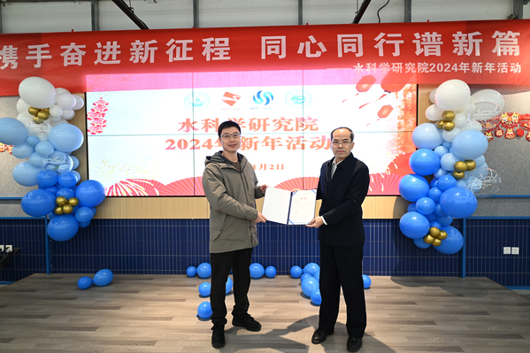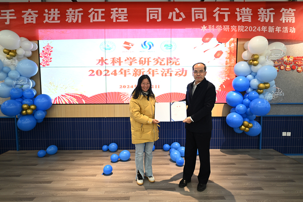活动伊始,副校长、水科院院长郑金海为2023年度新进人员颁发聘书并作新年贺词。他对新进人员的到来表示热烈欢迎,对水科院建院四年来取得的成绩予以肯定,并代表水科院领导班子感谢全体教职工对学校和水科院工作的理解、支持,祝福全体教职工健康平安、工作顺利、阖家幸福。