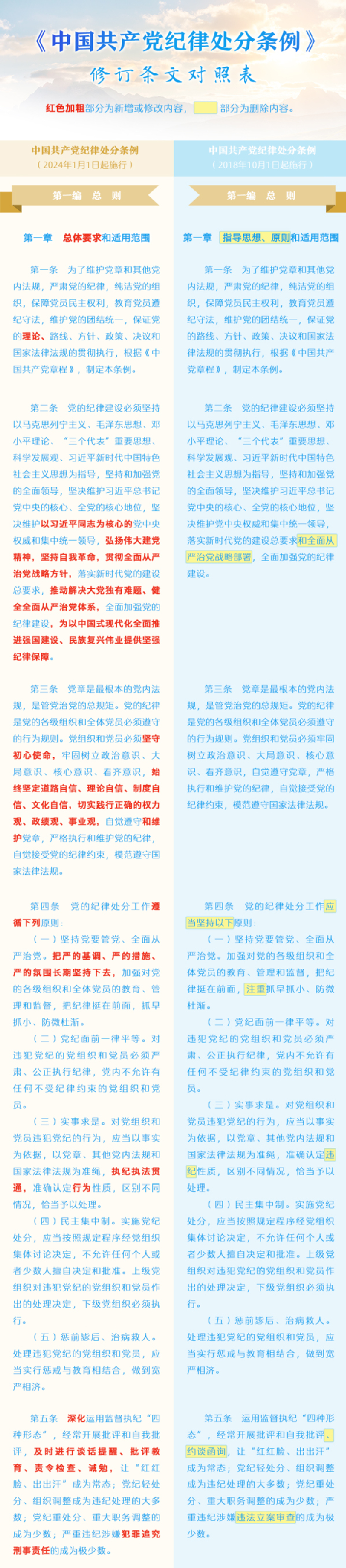 《中国共产党纪律处分条例》修订条文对照表