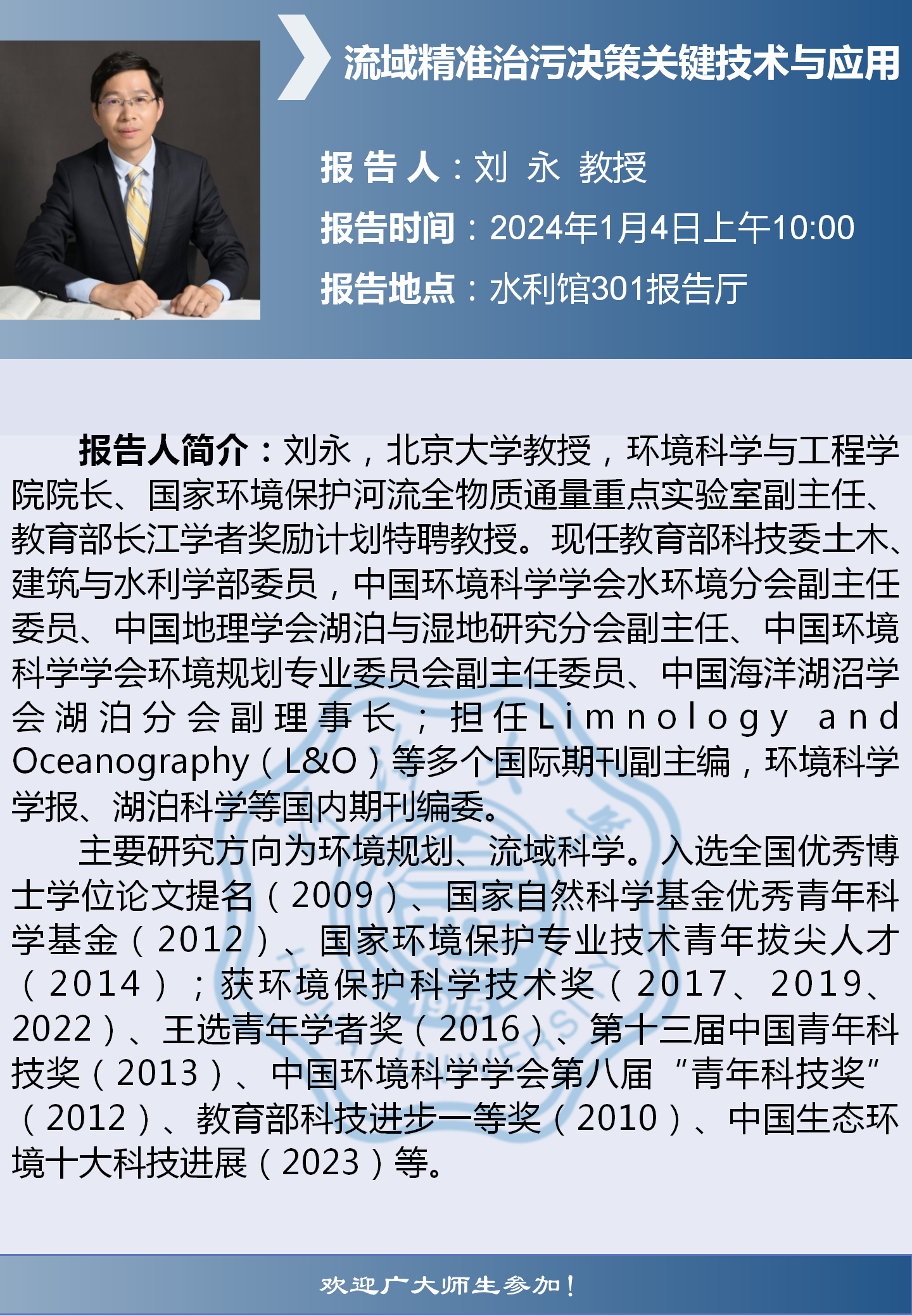 实验室学术报告:流域精准治污决策关键技术与应用