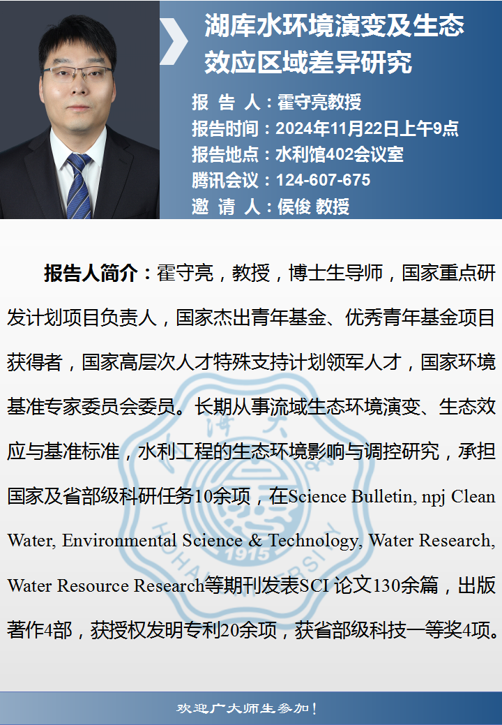 实验室学术报告:湖库水环境演变及生态效应区域差异研究