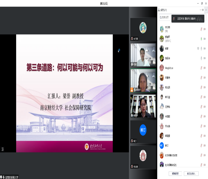 2022年9月29日晚上6--8点,社会保障专业研究生和老师近25人通过腾讯会议进行了长达2小时的读书分享会。本次读书会邀请了南京财经大学社会保障研究院的梁誉副教授作为主讲嘉宾,主要围绕安东尼·吉登斯的《第三条道路---社会民主主义的复兴》展开。