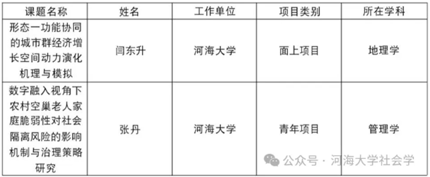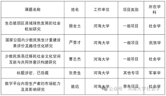 国家自然科学基金与国家社会科学基金是自然科学、与社会科学领域的国家级研究项目,其成果代表国家相关学术最高水平,可从科研创新、专业建设、社会服务等方面发挥引领作用,对社会学学科建设、高水平师资团队培育至关重要。我校社会学学科此次成功获得七项国家级基金项目,既有力彰显了学科长期积淀的科研实力,也为学科在人才培养、学术创新、服务社会等方面的进一步发展注入强劲动力,充分体现出学科建设的良好势头与蓬勃活力。