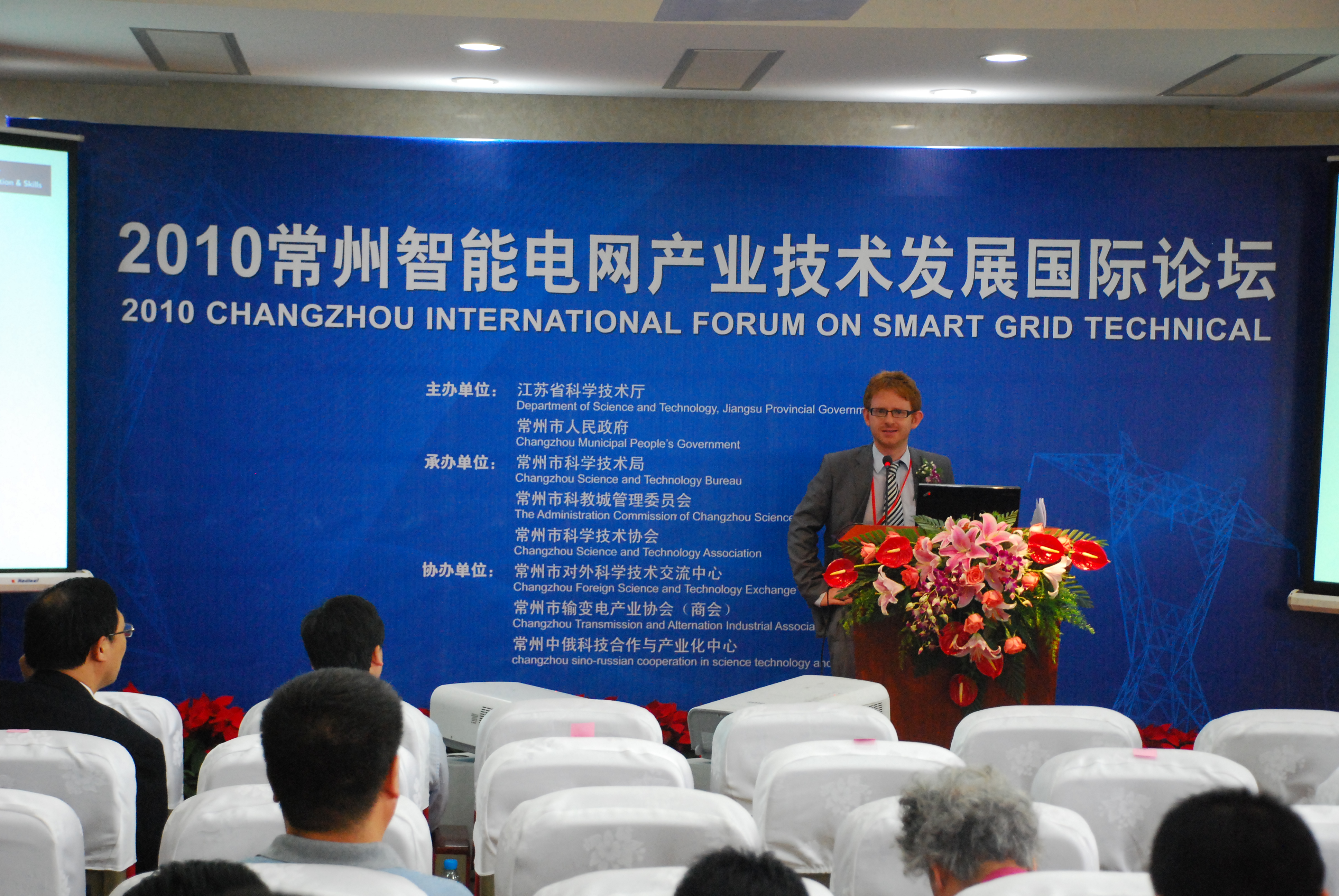 5月18日,“2010常州智能电网产业技术发展国际论坛”在常州市科教城举行,来自国内外技术、工业、学术等领域的专家,围绕智能电网产业技术发展与专题产学研对接,探讨电力发展的挑战和机遇。常州副市长高清出席论坛并致辞,大会论坛由常州市科技局吕卫明副局长主持。