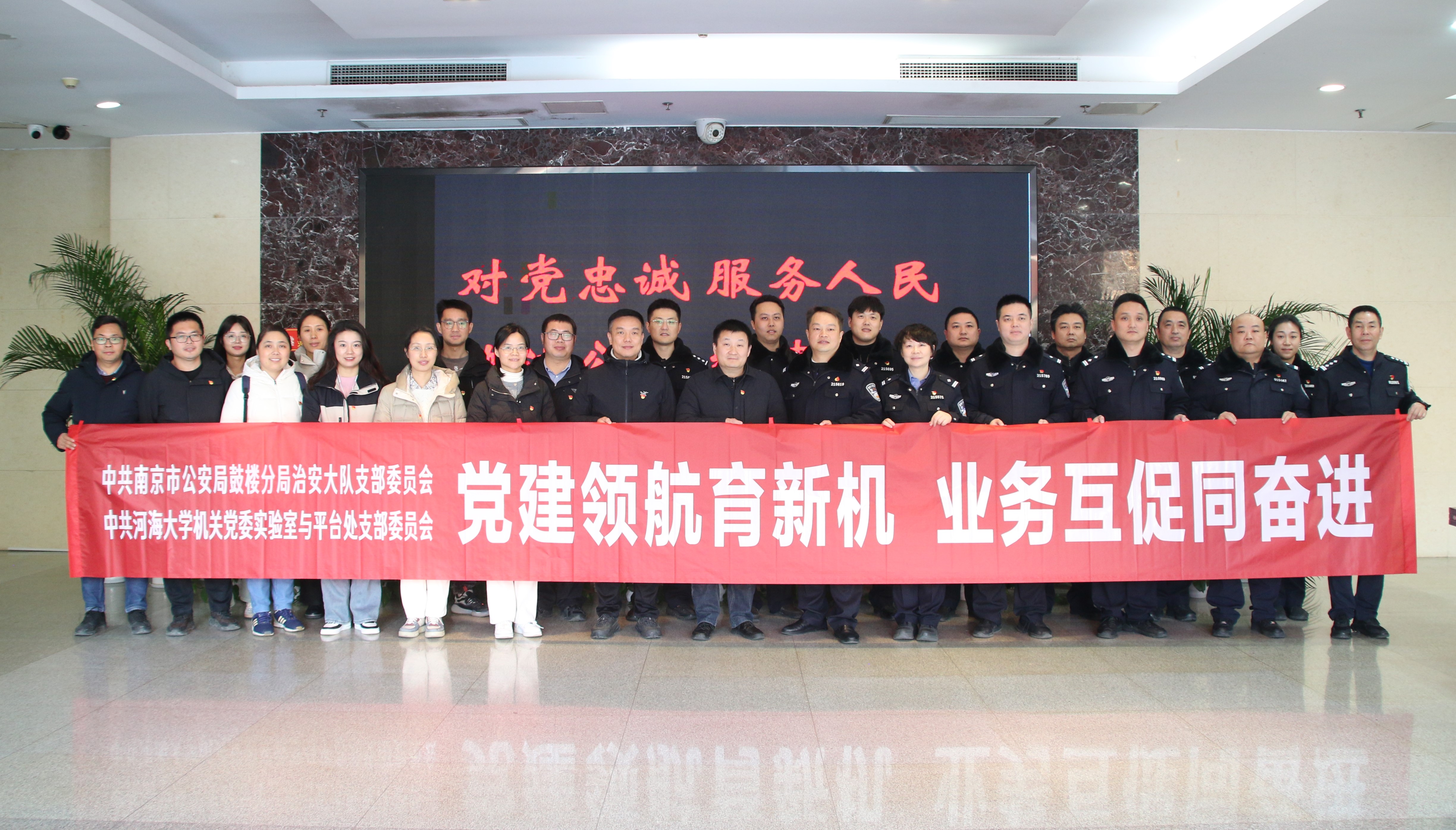 冬日暖阳如春意,晴空万里映党心。为深入学习贯彻党的二十大、党的二十届三中全会精神,深刻学习领悟习近平总书记关于党的建设的重要思想,搭建党建共建平台,形成“共建组织、共推业务、共谋发展”党建工作新格局,2025年1月2日,实验室与平台处党支部走进南京市公安局鼓楼分局治安大队开展以“党建领航育新机,业务互促同奋进”为主题的党支部共建活动。双方支部全体成员参加了本次活动。