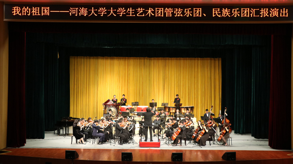 6月22日晚,我校大学生艺术团管弦乐团、民族乐团举办“我的祖国”主题汇报演出。音乐会特邀国家一级作曲、江苏省民族乐团常任指挥王爱康和南京艺术学院教授徐志廉分别指挥。学校近千名师生共同观看了演出,来自中国药科大学、南京农业大学、南京邮电大学艺术团的同学应邀观摩。