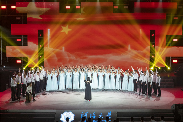 晚会分为“你好河海”、“青春河海”、“青春告白祖国”三个篇章,内容涵盖舞蹈、歌曲、民乐、弦乐、武术、健美操、小品等多种文艺形式。诗朗诵《百年河海》以一幅幅震撼人心的历史画卷全面展现了河海的百年辉煌,抒发了河海人对母校的无比自豪和深深热爱之情。舞蹈《禹志》,从编舞、配乐、服装、舞美、灯光均为我校原创,生动诠释了河海人治水兴邦的初心和使命。各学院院长通过视频为新同学们加油,勉励他们勤于学习、勇于实践、善于创新。学工系统负责人通过合唱《明天会更好》表达了对新生的热烈欢迎和真诚祝福。歌曲联唱《陪你度过河海岁月》《去见你》、舞蹈《邵多丽》《我的中国心》、管弦乐合奏《星球大战》《那些年我们追过的动画》、阿卡贝拉《Rather be》等节目清新活泼、高雅精致,展示了河海学子的青春与活力。民乐合奏《庆典序曲》、合唱《我爱你中国》、街舞串烧《Be yourself》、健美操《活力青春》等节目热情奔放、精彩纷呈,赢得了新生们的热烈掌声和阵阵欢呼。新生辅导员们通过舞蹈和合唱表达了他们作为新生健康成长人生导师和知心朋友的殷切期望。带训官兵们表演了擒拿格斗术,充分展示了人民子弟兵上阵杀敌、敢打必胜的优良风貌。晚会在歌舞《筑梦中国》中进入华彩尾声,表达了河海人歌唱祖国、告白祖国、奉献祖国的的光荣传统和使命担当。