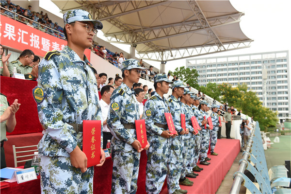 2019级学生军训旅全体成员,军训教官,各学院领导,2019级本科生辅导员参加了大会。(文/孙瀚 图/朱昊、彭国平、孙瀚)