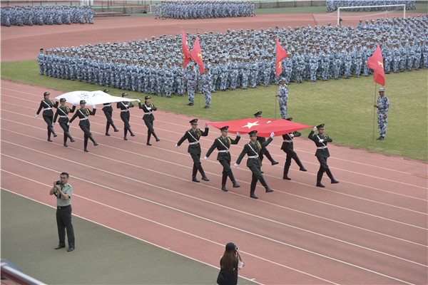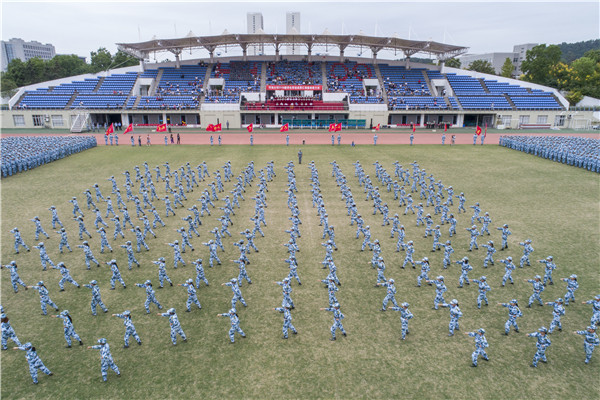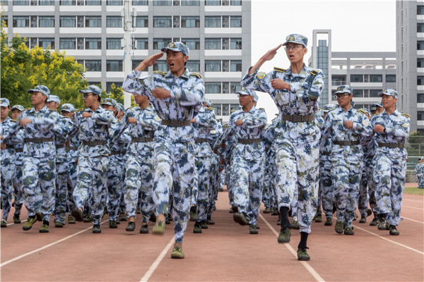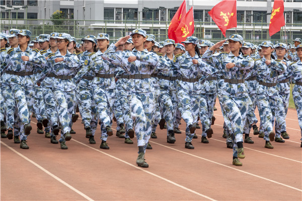 入场式中,由1800名新生组成的方队通过队形变化,拼出“中国”“70”“八一”“河海”等字样图案,同学们齐声高喊“不忘初心 牢记使命”“团结奋进 振兴中华”等口号,用青春向祖国告白,用行动诠释担当。在分列式中,由2019级学生军训旅十个连队组成的16个方队,喊着铿锵有力的口号,踏着整齐的步伐走向检阅台,展现多日训练的成果,接受全校师生的检阅。饱满的热情,嘹亮的口号,铿锵的步伐,飒爽的英姿,充分体现了同学们朝气蓬勃的青春活力和奋发向上的精神风貌。分列式后分别进行了男生擒敌拳和女生擒敌拳汇报表演。同学们精彩的表现赢得了现场领导、嘉宾、承训部队官兵、师生及家长的一致好评。