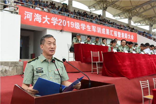 副校长、2019级学生军训旅旅长董增川在讲话中充分肯定了2019年军训工作和新生们取得的成绩,并勉励同学们立鸿鹄志,做奋斗者,始终保持锐意创新的勇气、敢为人先的锐气、蓬勃向上的朝气,不忘初心、牢记使命、开拓进取、砥砺奋进,让美好的青春在学校“双一流”建设的进程中绽放光彩,以奋斗之青春书写新时代的人生华章,用优异的成绩迎接新中国成立70周年。
