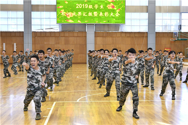 9月15日,我校举行2019级学生军训成果汇报暨表彰大会。校党委书记唐洪武,校长徐辉,2019级学生军训旅政委、校党委副书记郭继超,校总会计师张兵,校党委副书记孟新,副校长许峰,2019级学生军训旅旅长、副校长董增川,承训部队中国人民解放军空军94994部队副旅长杨勇等领导和嘉宾出席大会。大会由2019级学生军训旅副政委、人武部部长吴红主持。