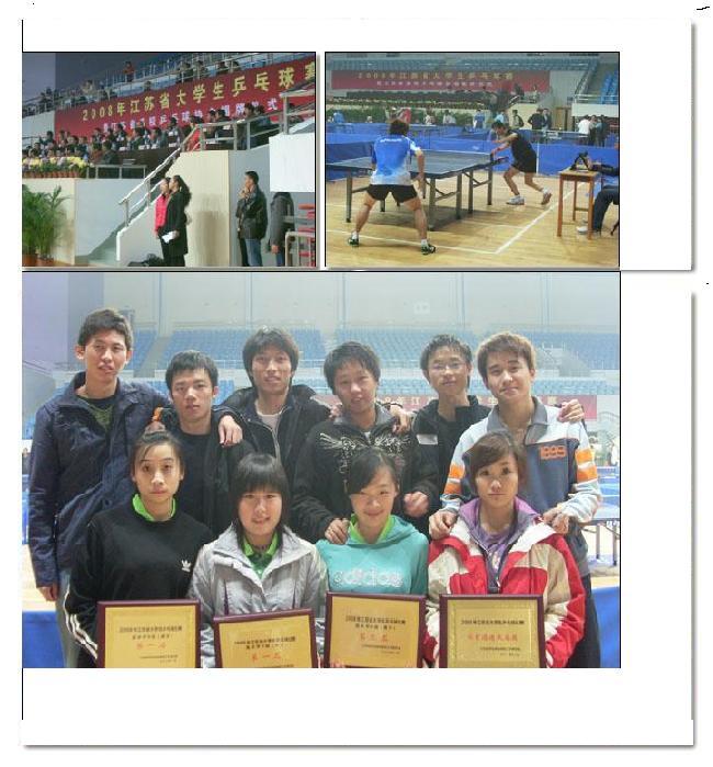 2008年江苏省大学生乒乓球比赛于11月14至16日在南京信息工程大学举行,参加这次比赛的有来自江苏省各高校的46个代表队,比赛分四组:高水平A组(甲A组)、高水平B组(甲B组)、本科组和专科组。