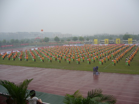 笔者作为本次团体操表演者之一,亲历了团体操排练到正式演出的每一个细节,其中的苦与乐,在这里与大家一同分享。作为开云电竞网每届校运动会的传统节目,该团体操已有十数年的表演历史,排舞教练精益求精,仍在不断改良中。团体操训练开始于一个月以前,一个月以来,大部分同学还在睡梦中的时候我们就开始了紧张的排练。清晨6:30,体育系负责老师、各院辅导员便与1200余名大一学生集合在操场上,一遍一遍的巩固动作熟练度,一遍一遍培养舞伴间配合能力,力求将最美的一面展示在各大高校眼前。多少个清晨,我们在舞曲中睁开惺忪的睡眼,拉着舞伴的手,机械的重复同样的动作?不是没有喊过累,也不是没有抱怨过,但扎根在心底的使命感和学校荣誉感让我们坚定了信念——将最靓丽的青春展示给大众的信念。在雨中的演出,旋转的舞步,舞出河海的神韵。爱足球,我心依旧;爱团体操,我心亦依旧。