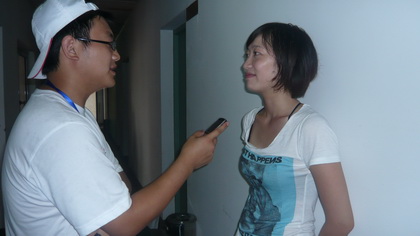 记者对团体操负责人陈露采访