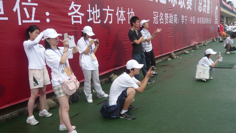 不管是在紧张激烈的赛场,还是在忙碌复杂的幕后,总有一群年轻的身影活跃着。在大足赛开始前,他们已经奔波于各体育系办公室、赛场、运动员宿舍、食堂等地方,采写各个与赛事相关的新闻点,在第一时间为关心赛事的朋友们送上新鲜的报道;大足赛开幕式,他们不管漫天的雨滴,仍然奋战在最接近精彩镜头的第一线,尽善尽美的为观众呈现一个又一个美妙的镜头;大足赛拉开帷幕后,他们驻守在各个赛场,在用灵动的笔触记录赛事的同时带着观众感兴趣的问题尽职的采访各队教练、运动员,事无巨细的为观众们全方位的报道和展示大足赛的风采。干瘪的平面媒体在他们的精心策划下活色生香。