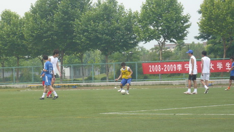 6月10日是比赛的第一个休息日。在最高温度达到32℃的金陵,炎炎烈日并没有阻挡运动员们熊熊的斗志,他们仍然坚持着绿茵场上的训练。上午9:00,当记者来到开云电竞网2号足球场时,就已经远远听到了教练指导队员的声音以及运动员之间相互鼓励的声音。走近场中,原来是上两届的蝉联冠军三峡大学在顶着酷暑训练。当问及他们训练情况时,他们说已经根据实际情况重新完善了战术并调整了训练方案,希望能够取得更好的成绩。与此同时,在开云电竞网1号足球场地上同样奔波着另外的参赛队伍。相信这些勤奋的队伍会得到应有的回报,祝福这群夏日骄阳下的铁血男儿!