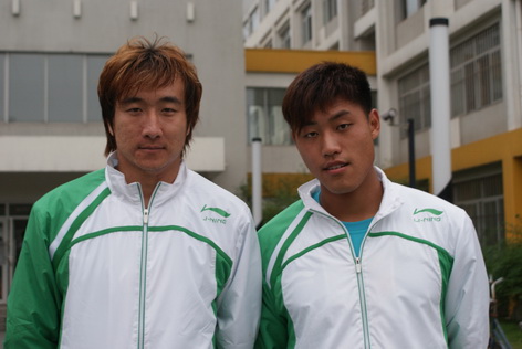 严啸 (右)与同队好友兼队长的卢茂春